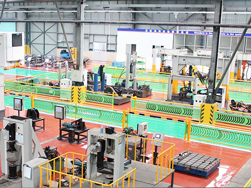 富華重工擁有12個(gè)大型生產(chǎn)車(chē)間,工廠總占地面積達(dá)1,000,000平方米。公司主要生產(chǎn)設(shè)備采用世界知名企業(yè)品牌,所有關(guān)鍵加工和熱處理和熱處理工藝屬于世界領(lǐng)先水平,主要關(guān)鍵零部件橋殼、齒輪、制動(dòng)器、半軸等都是自制件,有效地保證了產(chǎn)品的質(zhì)量。