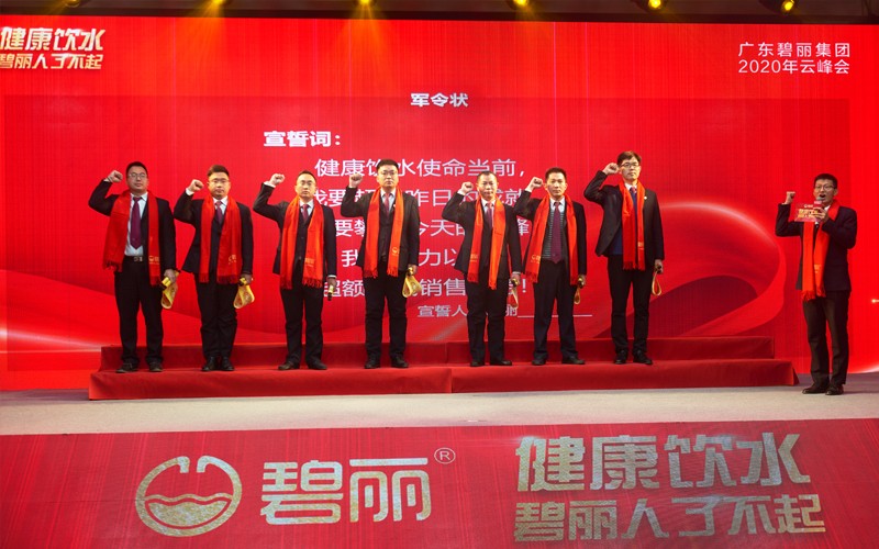碧麗營銷部代表在碧麗總裁巫宗權(quán)先生的見證下立下軍令狀,并表示在2021年將超額完成任務(wù),繼續(xù)為中國公共飲水事業(yè)做奉獻(xiàn)。宣誓儀式后,總裁為他們一一授旗,激勵各營銷部代表朝著目標(biāo)奮進(jìn)!
