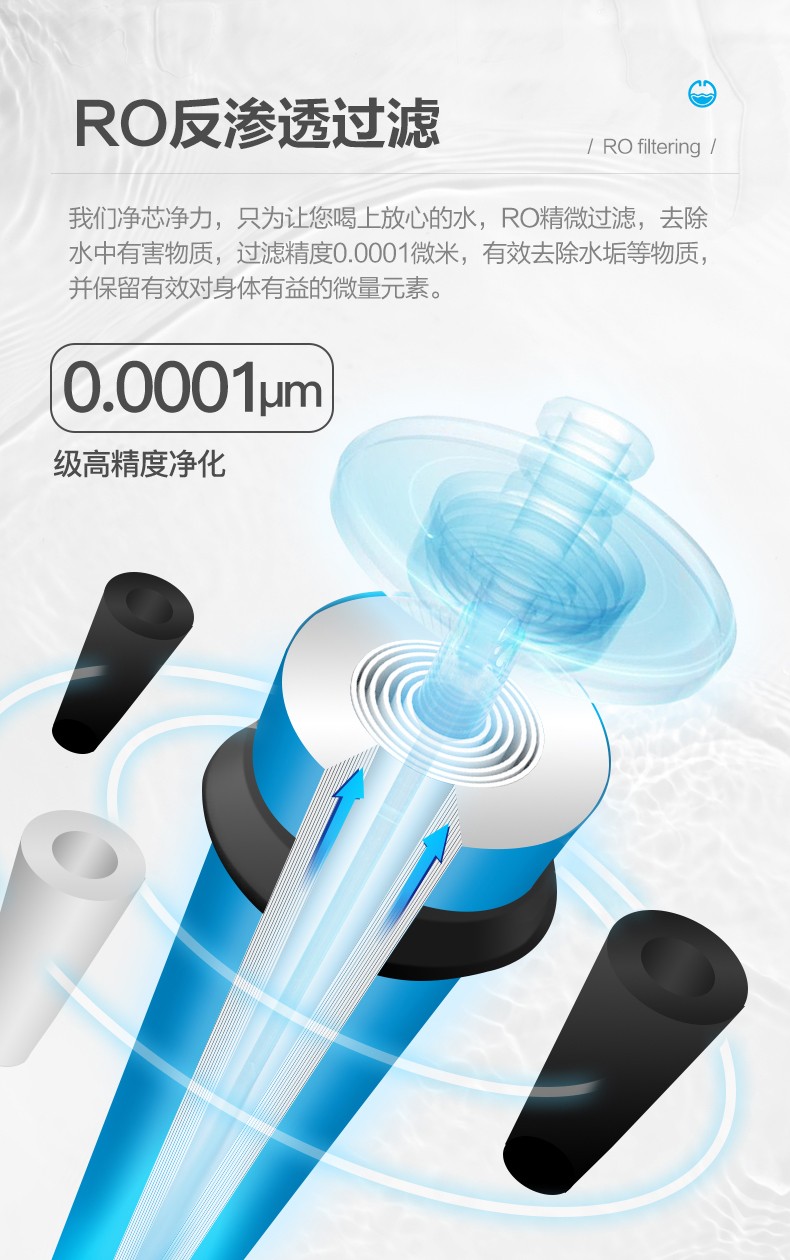 • 凈水方式:RO反滲透(800G,五級(jí)過濾通用濾芯),配置壓力儲(chǔ)水罐